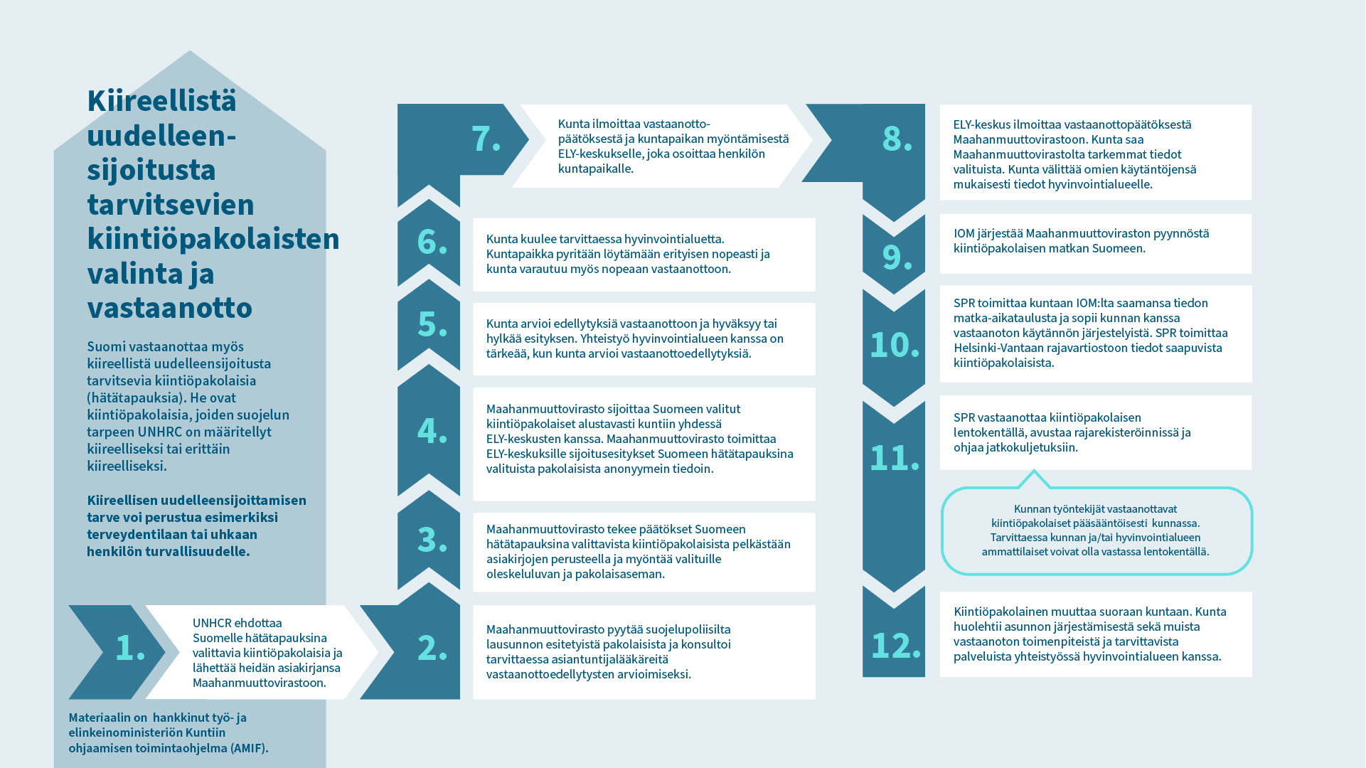 - kiireellistä uudelleensijoitusta tarvitsevien valinta ja vastaanotto